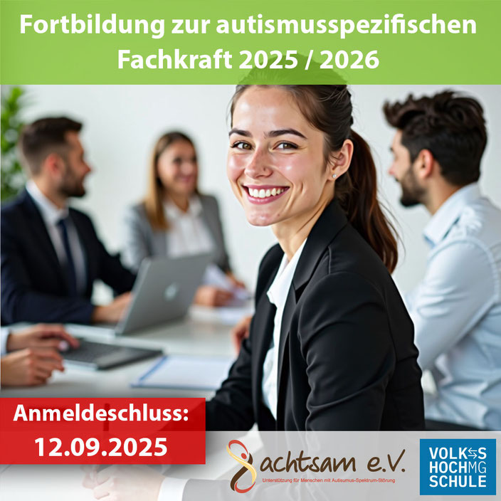 Sie wollen sich intensiv und aus verschiedenen Perspektiven mit dem Thema Autismus auseinandersetzen? Sie wollen therapeutisch tätig werden oder in Ihrer Einrichtung zum kompetenten, ausgebildeten Ansprechpartner zum Thema Autismus und Kinder im Autismus-Spektrum werden? Dann ist unsere Fortbildung zur qualifizierten, autimusspezifischen Fachkraft genau richtig für Sie!